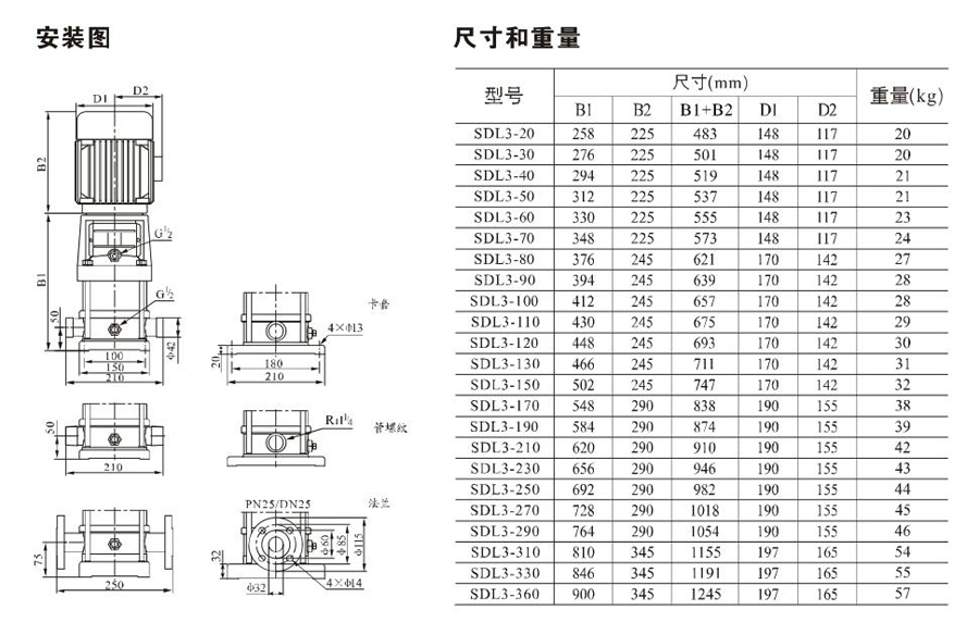 南元SDL3/SDLT3立式多級離心泵有不同的泵規(guī)格和不同級數(shù),以滿足所需的流量和壓力。
